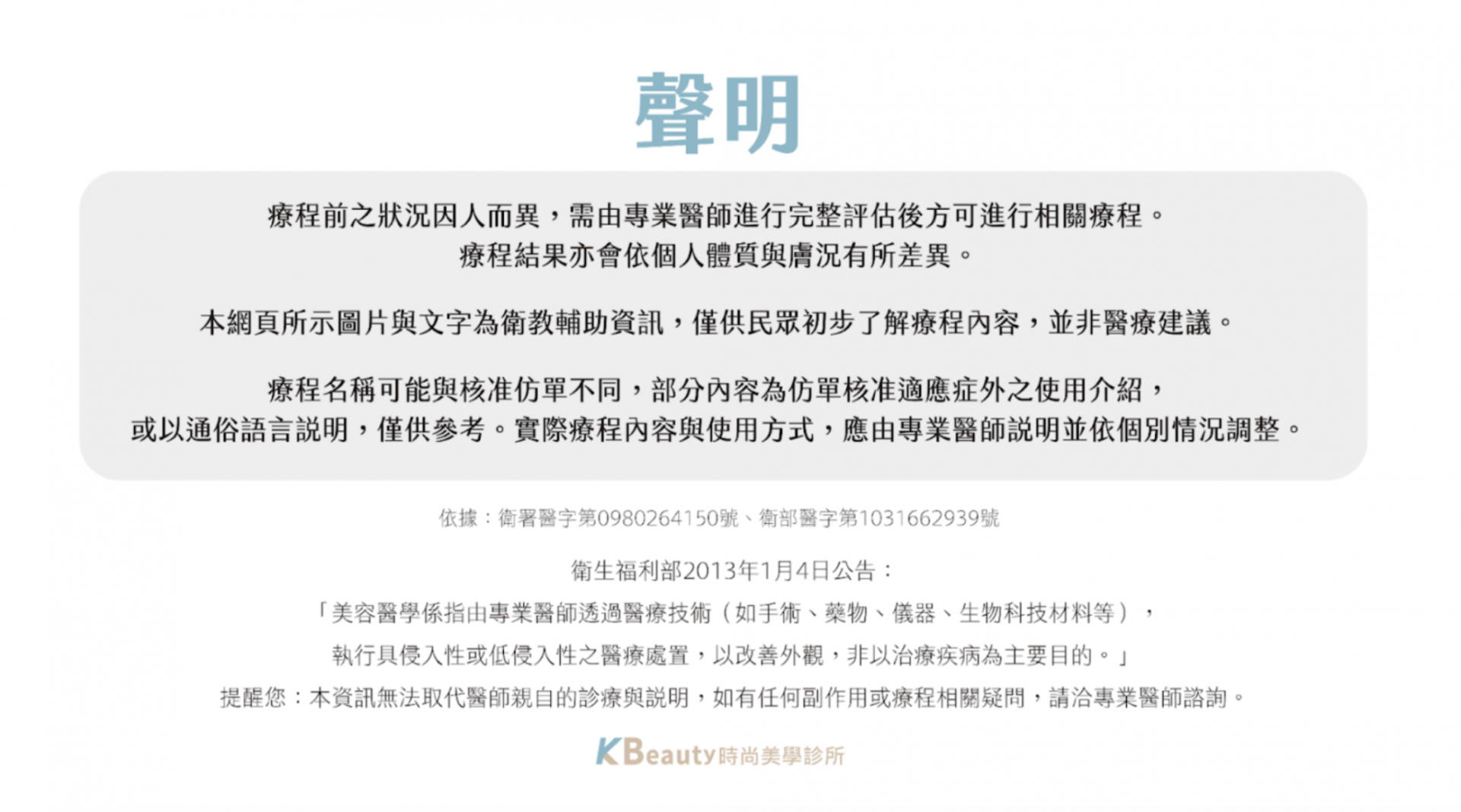 KB提醒:美麗的成果需要你我共同努力。請務必遵循以上指示,並按時回診,讓專業醫師為您的美麗把關。