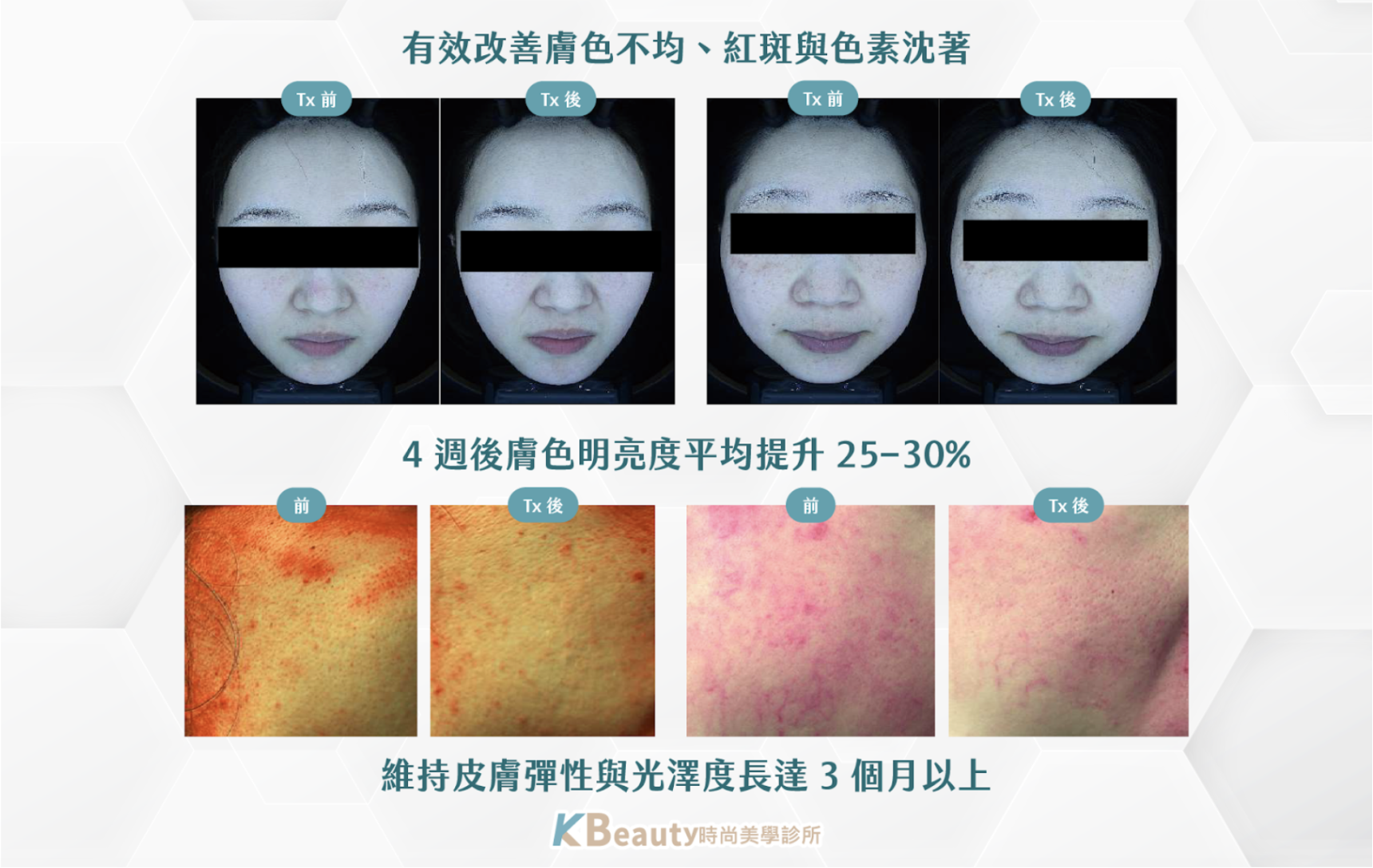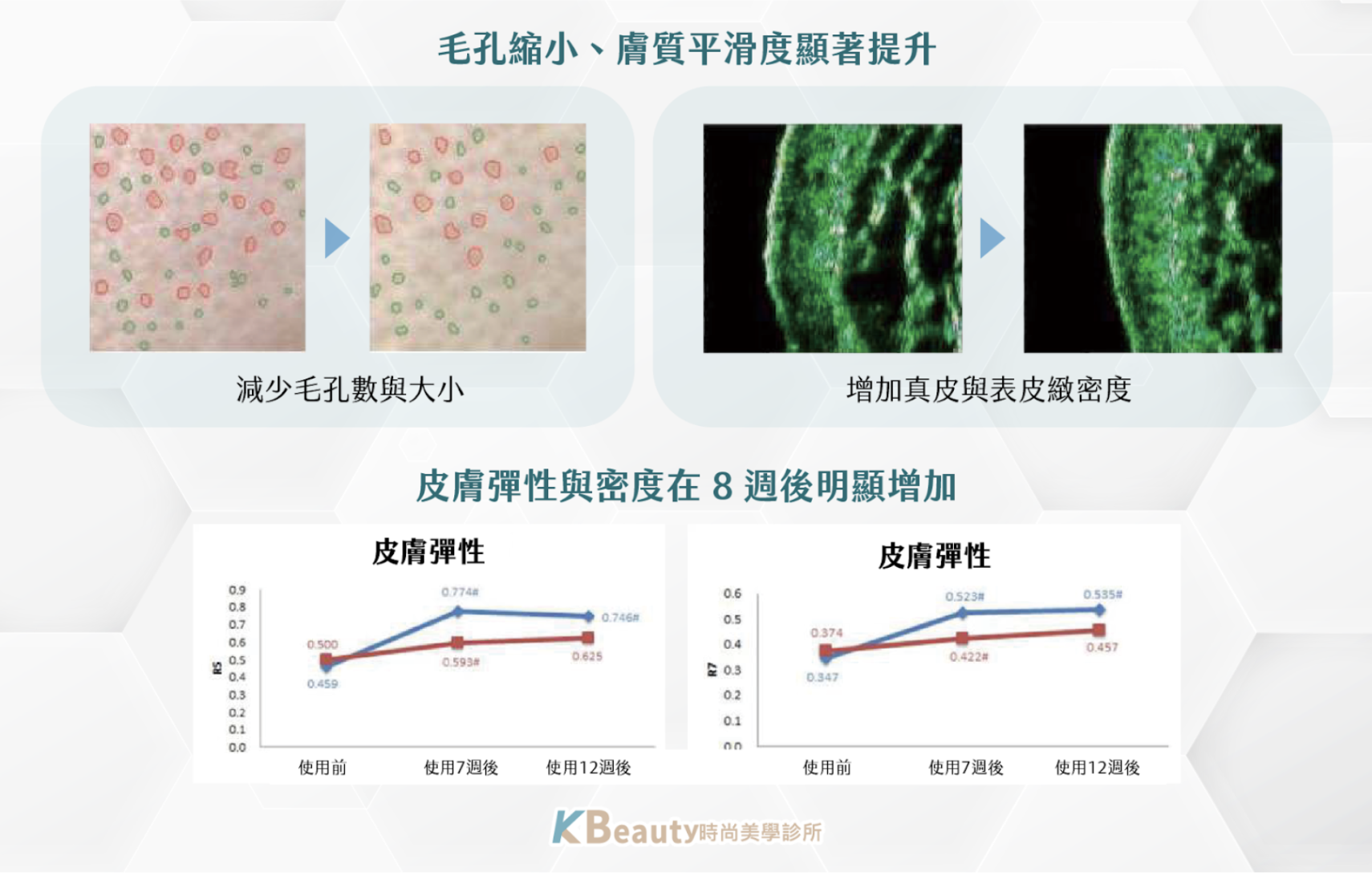 通常 1 週後膚質開始變細緻,約 3–4 週後可見彈潤與光澤感顯著提升。